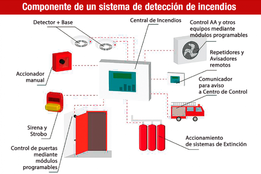 Básicamente cualquier sistema de detección de incendios está conformado por los siguientes componentes:
